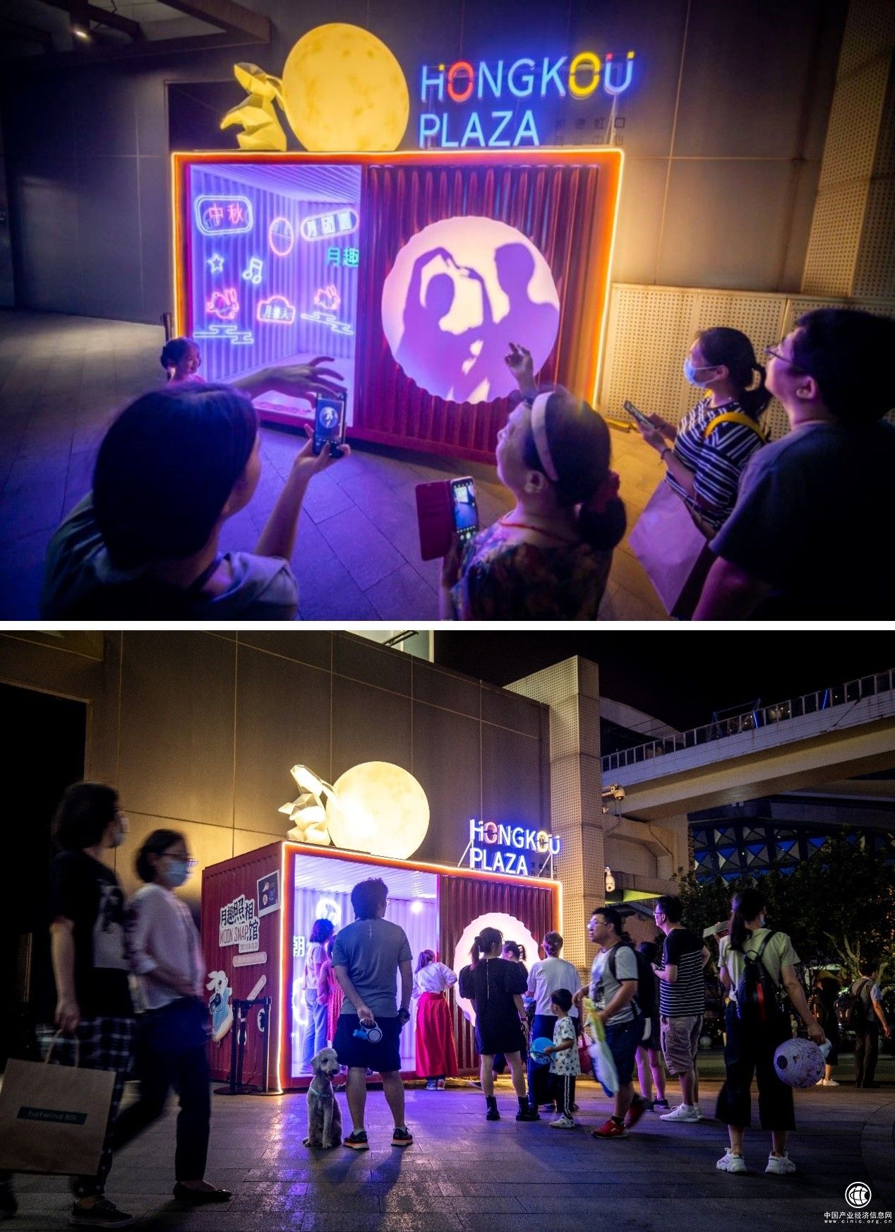 外廣場的?月影屋?,拉近了人們賞月的距離,誰說月亮只能靜靜獨懸夜空?凱德虹口這次就把月亮“摘”到了月影屋。巨大的集裝箱造型,裝著一輪“明月”,透著皎潔的光。在朦朧月光前擺好姿勢,任意角度,都能拍出驚艷的照片。還有摩登的霓虹燈光,吸了引許多想要拍“賽博朋克”風的時髦年輕人。中秋小長假期間,這里成為了全場人氣最旺的打卡點。