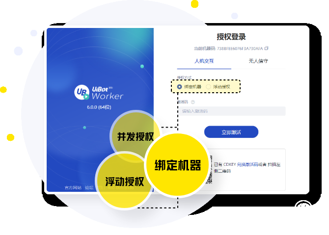 流程機(jī)器人支持多種授權(quán)方式,可以人機(jī)交互-綁定機(jī)器授權(quán)、人機(jī)交互-浮動(dòng)授權(quán),也可以無人值守模式授權(quán)。不同的授權(quán)方式之間,是可以自由、靈活切換的,這樣的設(shè)計(jì)讓不同客戶的業(yè)務(wù)需求都得到了滿足。