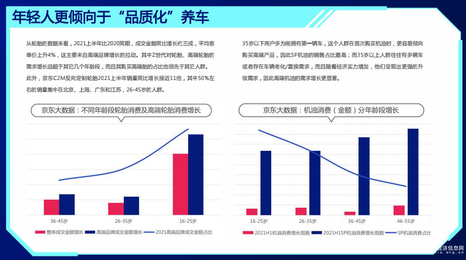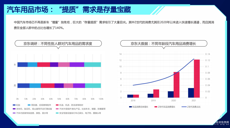 如果說80后愿意為好產(chǎn)品買單,那么Z世代則更愿意為體驗買單。隨著Z世代車主的逐漸增加,對汽后服務(wù)的品質(zhì)要求日漸提升。報告指出,年輕人消費升級占比領(lǐng)先,他們傾向于“品質(zhì)化”養(yǎng)車,“提質(zhì)”成為他們的主流消費需求。Z世代的消費尤其在2020年以來進入快速增長通道,而且其消費在全部人群中的占比也增長了140%。