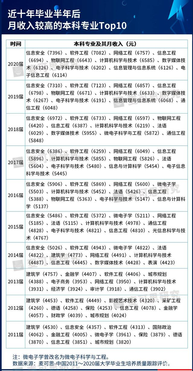 日前,麥可思研究針對十年來的本科高薪專業(yè)發(fā)布調研報告,稱信息安全已取代建筑學成為收入最高的專業(yè),并連續(xù)7年問鼎各本科專業(yè)的收入最高;軟件工程、數(shù)字媒體技術等計算機類,也穩(wěn)居近年來的高薪專業(yè)榜單。