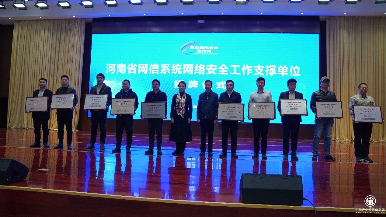 “河南省網信系統(tǒng)網絡安全工作支撐單位”授牌儀式現(xiàn)場。