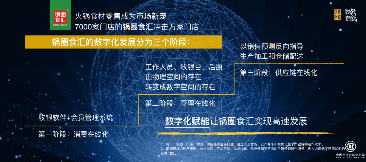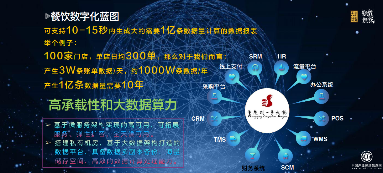 接著,孫總以天財商龍戰(zhàn)略合作客戶、全國知名火鍋品類連鎖餐飲企業(yè)——“重慶劉一手火鍋”與“鍋圈食匯”為例,分別解讀了基于大數(shù)據(jù)架構(gòu)打造的數(shù)據(jù)平臺為“重慶劉一手火鍋”帶來的海量數(shù)據(jù)監(jiān)控及智能決策幫助,以及數(shù)字化賦能讓“鍋圈食匯”通過“消費在線化”“管理在線化”“供應(yīng)鏈在線化”三個階段實現(xiàn)了全國7000+門店的高速發(fā)展!