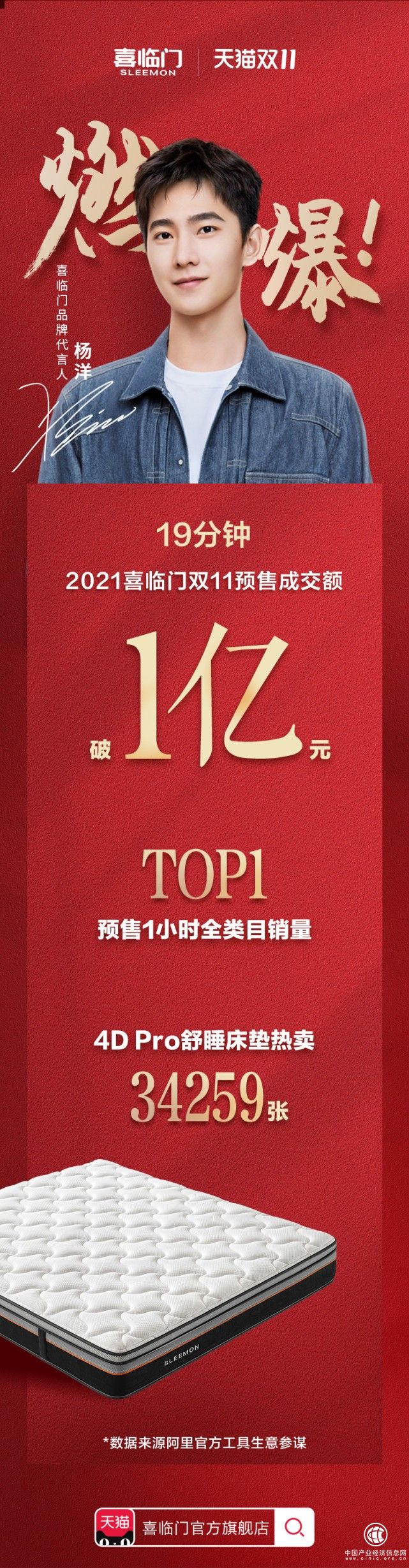 根據(jù)喜臨門官方雙十一預(yù)售戰(zhàn)報(bào),19分鐘,天貓預(yù)售即破億,預(yù)售1小時(shí)銷量沖至全類目第一,單品4DPro舒睡床爆賣34259張;京東端,預(yù)售45分鐘,喜臨門銷售額超2020年雙十一預(yù)售期,預(yù)售1小時(shí)同比2020年京東第一波預(yù)授權(quán)其增長(zhǎng)超31%,預(yù)售單品銷量第一。