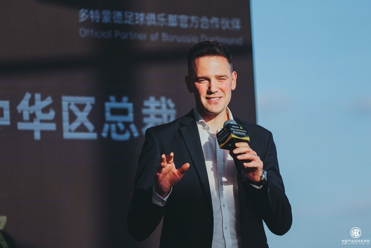 ▲多特蒙德足球俱樂(lè)部大中華區(qū)總裁本杰明·瓦爾(Benjamin WAHL)于簽約現(xiàn)場(chǎng)致辭