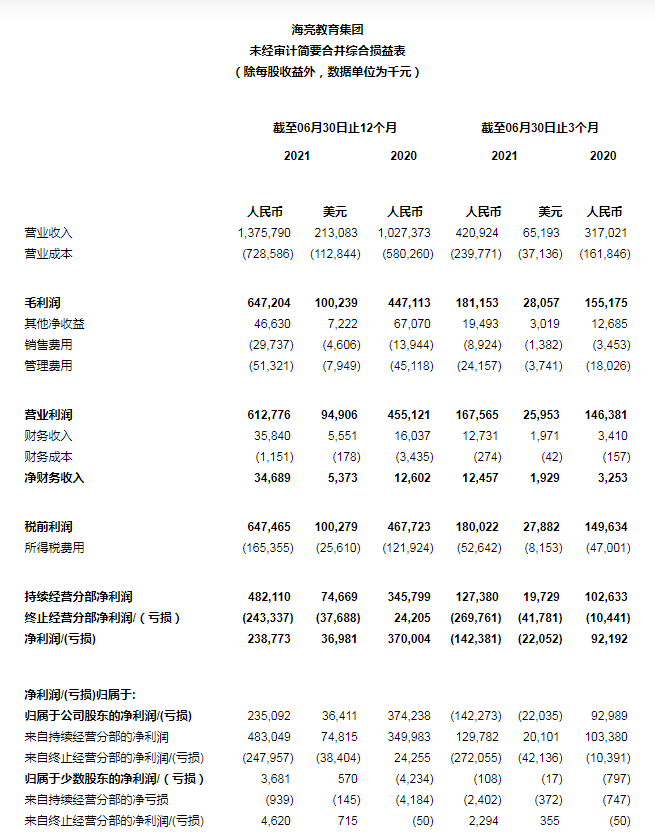 基于國際會(huì)計(jì)準(zhǔn)則第10號(hào)合并財(cái)務(wù)報(bào)表的規(guī)定,公司認(rèn)為自2021年9月1日起失去對(duì)協(xié)議控制的義務(wù)教育學(xué)校的控制權(quán)(詳見“期后事項(xiàng)”)。同時(shí)考慮到2021年6月30日至2021年9月1日之間為暑期,義務(wù)教育學(xué)校無實(shí)質(zhì)的經(jīng)營活動(dòng)業(yè)務(wù)發(fā)生。因此,公司將義務(wù)教育學(xué)校業(yè)務(wù)重分類為終止經(jīng)營分部,也相應(yīng)對(duì)本年及對(duì)比期間的利潤表進(jìn)行了重新列示。