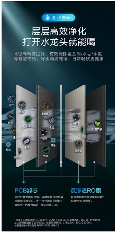 除此之外,在過濾方式的選擇上,美的極光凈水器采用純物理過濾,沒有化學(xué)成分,不影響水的本來結(jié)構(gòu),安全性更高。5級高精度過濾功能可以有效過濾重金屬、水垢、余氯等有害物質(zhì),并且補(bǔ)足了物理過濾的短板,守護(hù)家庭健康飲水。