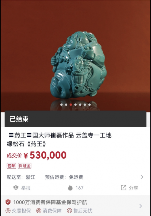 「北京合一雅玩拍賣」的綠松石《藥王》成為王耀慶直播成交最高的拍品