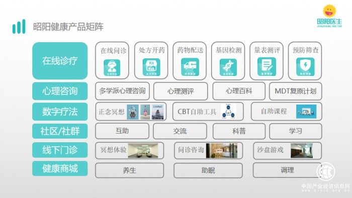 2015年,昭陽健康創(chuàng)始人林昭宇從醫(yī)院辭職創(chuàng)業(yè),開發(fā)了昭陽醫(yī)生APP,可以說,昭陽醫(yī)生的問世,就是精神心理數(shù)字化的成果。據(jù)悉昭陽醫(yī)生依托移動互聯(lián)、大數(shù)據(jù)和人工智能技術(shù),為醫(yī)患雙方搭建了專業(yè)、方便、可靠的精神心理診療平臺。平臺上聚焦篩查、預(yù)防、診斷、治療、慢病管理等多個應(yīng)用場景,為醫(yī)生提供高效的管理工具,為患者提供方便、可及、專業(yè)的問診服務(wù)。目前,昭陽醫(yī)生已形成在線診療、心理咨詢、數(shù)字療法、社區(qū)/社群、線下門診、健康商城六大產(chǎn)品矩陣,滿足了使用者“預(yù)防-診療-康復(fù)-強(qiáng)化”、從輕到重、從線上到線下、從藥物治療到心理治療的各層次需求。