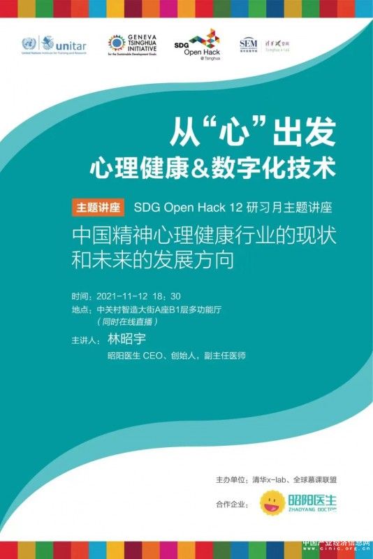 11月11日,由清華大學(xué)創(chuàng)意創(chuàng)新創(chuàng)業(yè)教育平臺(簡稱“清華x-lab”)、i-Center與清華大學(xué)學(xué)生全球勝任力發(fā)展指導(dǎo)中心聯(lián)合舉辦的“2021 SDG開放創(chuàng)新馬拉松挑戰(zhàn)賽”正式開放報名。昭陽健康研發(fā)的、國內(nèi)領(lǐng)先的精神心理健康輔助診療平臺昭陽醫(yī)生成為活動合作伙伴。在12日舉辦的SDG Open Hack12研習(xí)月主題講座上,昭陽健康CEO、創(chuàng)始人、副主任醫(yī)師林昭宇帶來《從“心”出發(fā) 心理健康&數(shù)字化技術(shù)》專題講座,解讀中國精神心理健康行業(yè)的現(xiàn)狀和未來的發(fā)展方向,研討如何運(yùn)營數(shù)字化技術(shù)保障大眾的心理健康,并對觀眾問題進(jìn)行答疑。講座干貨滿滿、精彩紛呈,幫助觀眾提升了對于精神心理健康的認(rèn)知和思考,喚醒學(xué)子對“人工智能+精神心理”探索的興趣。