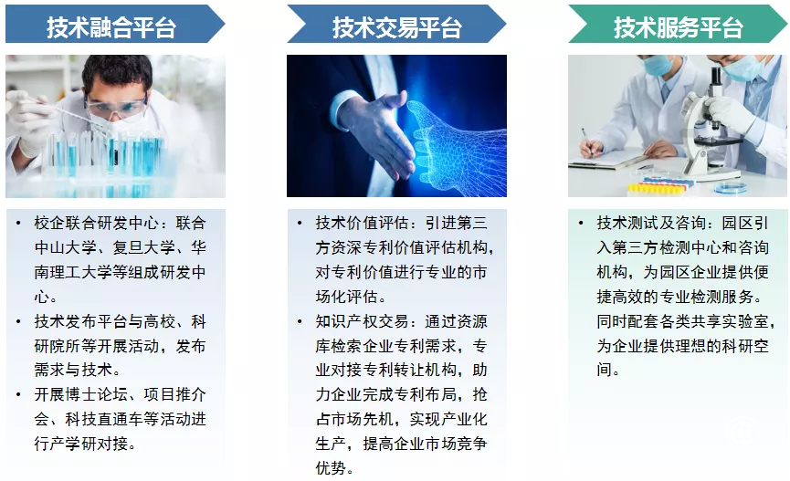 中大創(chuàng)新谷通過技術(shù)融合平臺、技術(shù)交易平臺和技術(shù)服務(wù)平臺,幫助企業(yè)解決技術(shù)創(chuàng)新問題。