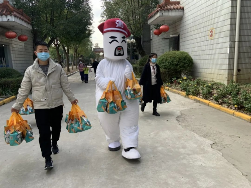接著粥員外古城街店老板親自驅(qū)車(chē)來(lái)到敬老院,送來(lái)了80余份粥品+小食,并笑著和我們說(shuō)道:“必須支持呀!暖粥都是清晨現(xiàn)熬2小時(shí)的,熱乎乎的,希望老人們能喝的開(kāi)心!能為公益活動(dòng)盡一份綿薄之力,我也深感榮幸!”