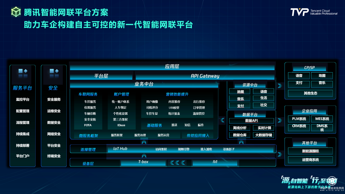 在今年 11 月 3 日召開的騰訊數(shù)字生態(tài)大會上,騰訊發(fā)布了智能網聯(lián)平臺方案,助力車企構建自主可控的新一代智能網聯(lián)平臺。該套方案下,所有的服務、CP/SP 都可以做到模塊化,實現(xiàn)從底層車機到頂層應用的有機串聯(lián)與閉環(huán)。