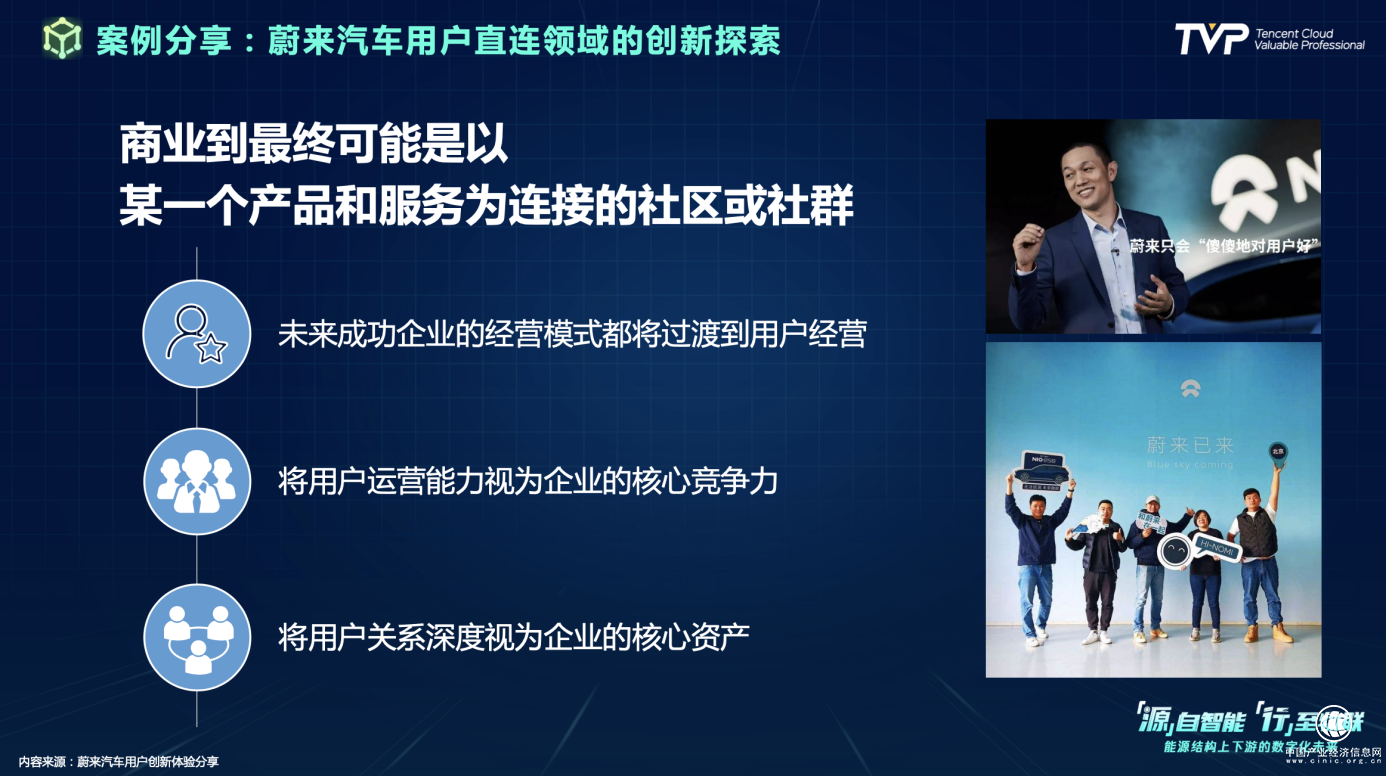 蔚來在成立之后在產品上花了很多功夫,除此之外最大的創(chuàng)新點在于認識到對于中國這樣一個龐大的市場,商業(yè)模式最終可能是落到以某一個產品和服務為連接的社區(qū)或社群中,用戶運營的能力、關系深度將成為企業(yè)的核心競爭力與核心資產。在這背后,蔚來成功地做到了: