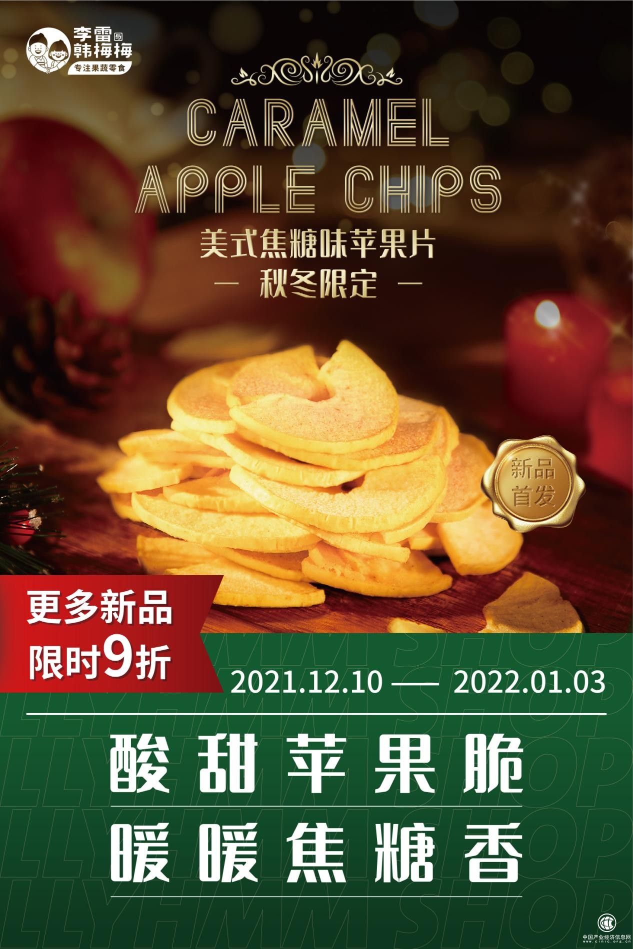 秋冬的甜美和溫暖,從一片李雷與韓梅梅新品,美式焦糖味蘋果片開始。作為原有的黃金蘋果片的升級版,此款產(chǎn)品在基礎(chǔ)風味上創(chuàng)新添加可可粉與焦糖,保留蘋果原香,焦糖味道與蘋果片原香的微酸風味融合,甜美濃郁,香氣一口難忘。