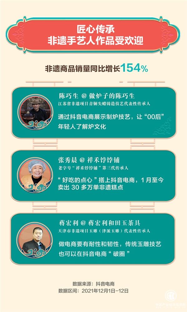 數(shù)據(jù)顯示,“雙12”期間,抖音電商重點推介非遺傳承人和其手工藝品,并推動非遺商品銷量同比增長了154%。在“看見手藝計劃”的支持下,手藝人們在抖音講述商品背后的歷史,讓“買賣”助力匠心傳承。