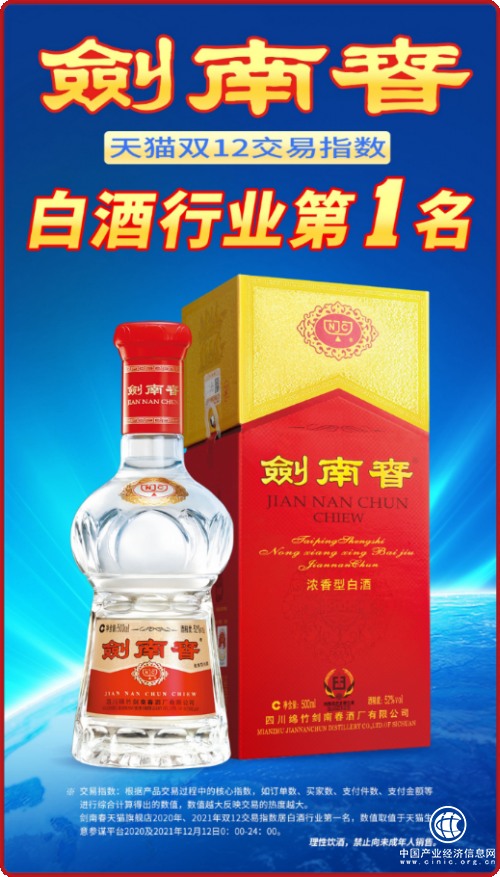 2021年“雙12”天貓年終購物節(jié)戰(zhàn)報(bào)出爐,劍南春天貓平臺官方旗艦店以超高人氣和火爆的銷量,勇奪天貓“雙12”白酒品牌旗艦店交易指數(shù)第一名。