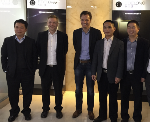 2015年,德國(guó)易能森(Enocean)公司首席執(zhí)行官CEO Warsisker先生和首席技術(shù)官CTO Frank先生訪問(wèn)易百瓏。Frank先生為易能森公司多項(xiàng)技術(shù)的發(fā)明人,易百瓏和易能森雙方就自發(fā)電領(lǐng)域產(chǎn)品形態(tài)發(fā)展與合作展開(kāi)了深入交流。易能森公司作為德國(guó)較早從事無(wú)源無(wú)線產(chǎn)品研發(fā)的企業(yè),其產(chǎn)品線較為豐富,在歐美的知名度較高。通過(guò)與易能森的交流,易百瓏更加堅(jiān)定了走向海外的決心。兵馬未動(dòng)糧草先行,在產(chǎn)品登錄歐美的前期,易百瓏就開(kāi)始海外專利布局,在美國(guó)、歐洲等地區(qū)和亞洲國(guó)家如日本和韓國(guó)先后獲得發(fā)明專利11項(xiàng),為易百瓏產(chǎn)品走出國(guó)門構(gòu)建了知識(shí)產(chǎn)權(quán)的有力屏障。