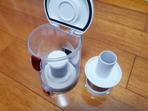 塵盒的清洗是本人使用過的吸塵器里最好清理的一個(gè)。按下一鍵傾倒按鈕可以傾倒里面的灰塵,完全不會(huì)臟手,還可拿下來直接使用清水沖洗,比那些需要手動(dòng)拆機(jī)的吸塵器方便很多。塵盒的容量升級(jí)到了0.8L,一般來說,清潔450㎡的面積倒灰一次即可,也就是說,對(duì)于大多數(shù)家庭來說,使用四到五次才倒灰一次,避免了頻繁倒灰的麻煩。