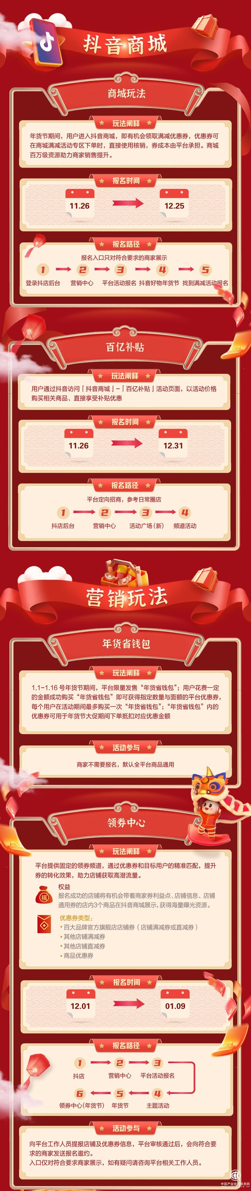 為幫助商家、達(dá)人、機(jī)構(gòu)、服務(wù)商等合作伙伴盡早搶占商機(jī),提前做好布局規(guī)劃,抖音電商已正式啟動(dòng)招商,并公布了抖音好物年貨節(jié)的節(jié)奏、玩法和各項(xiàng)激勵(lì)政策。