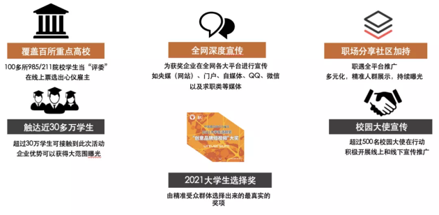 最終,經過層層評選,“大學生選擇獎”獲獎榜單發(fā)布,覆蓋營銷、創(chuàng)新、活動和綜合四大類別,快來看看哪些雇主拔得了頭籌!