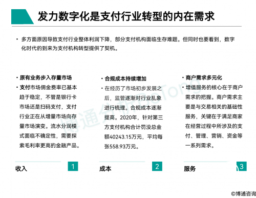 近期博通分析《中國支付行業(yè)產(chǎn)業(yè)數(shù)字化服務(wù)專題分析2021》發(fā)布,本報(bào)告主要從支付行業(yè)幫助不同類型企業(yè)完成數(shù)字化升級的角度,對支付產(chǎn)業(yè)賦能企業(yè)數(shù)字化這一變革發(fā)生的背景、現(xiàn)狀和未來發(fā)展趨勢層面進(jìn)行專題分析。
