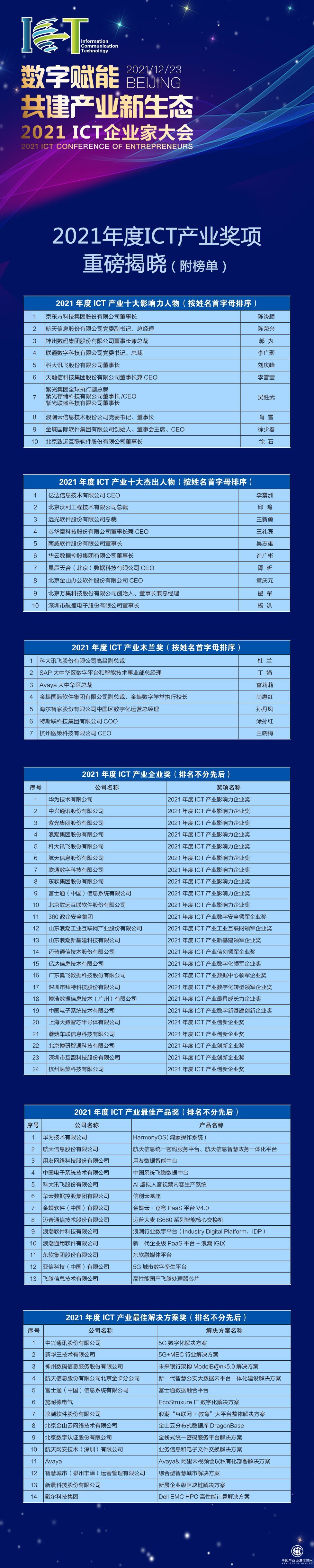 12月23日,以“數(shù)字賦能,共建產(chǎn)業(yè)新生態(tài)”為主題的2021ICT企業(yè)家大會(huì)在線上舉行,大會(huì)同期發(fā)布了2021年度ICT產(chǎn)業(yè)人物、企業(yè)、產(chǎn)品和解決方案等獎(jiǎng)項(xiàng),旨在鼓勵(lì)和表彰2021年ICT產(chǎn)業(yè)內(nèi)較為突出貢獻(xiàn)的企業(yè)和個(gè)人。