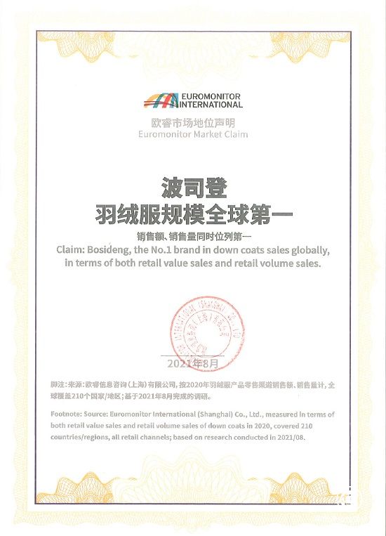 近年來,波司登不斷突破工藝、設(shè)計(jì)領(lǐng)域發(fā)展,引領(lǐng)世界羽絨服變革,獲得全球市場認(rèn)可。今年,波司登首次入選了國際品牌價(jià)值評估權(quán)威機(jī)構(gòu)Brand Finance公布的“2021全球最具價(jià)值服飾品牌排行榜50強(qiáng)”,此前,世界權(quán)威調(diào)研機(jī)構(gòu)歐睿發(fā)布全球羽絨服調(diào)研報(bào)告,認(rèn)證中國品牌波司登羽絨服規(guī)模全球第一,全球領(lǐng)先地位無可撼動(dòng)。
