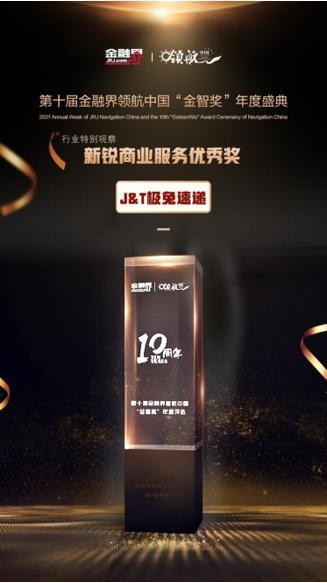 12月20-24日,2021金融界領(lǐng)航中國(guó)年會(huì)周通過線上論壇的方式盛大舉辦,一年一度的“金智獎(jiǎng)”獎(jiǎng)項(xiàng)評(píng)選結(jié)果也于24日正式揭曉,J&T極兔速遞榮獲“新銳商業(yè)服務(wù)優(yōu)秀獎(jiǎng)”。