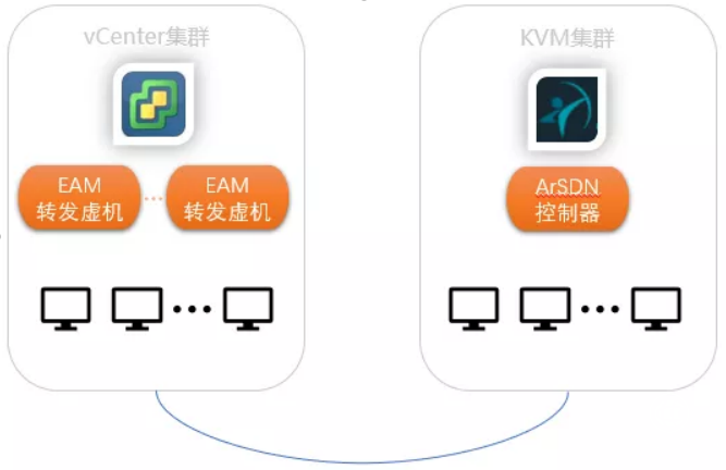 為了更好的和vCenter對接,ArSDN以EAM虛擬機的方式來提供對vCenter轉發(fā)流量的控制。ArSDN的控制器則可以選擇部署在vCenter集群內,或者是一個安超集群中。