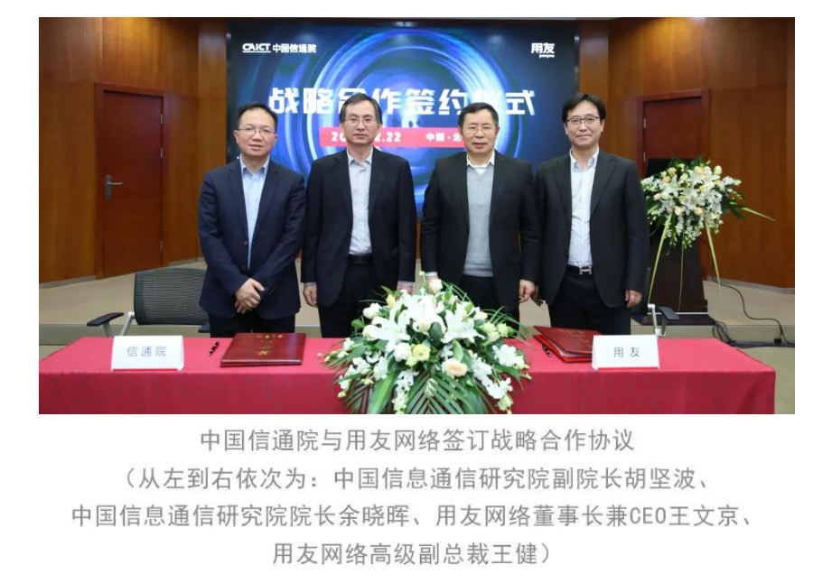 會上,中國信通院與用友網(wǎng)絡(luò)簽訂戰(zhàn)略合作協(xié)議。雙方將在ICT領(lǐng)域繼續(xù)開展深入合作,共同推動工業(yè)互聯(lián)網(wǎng)產(chǎn)業(yè)發(fā)展,建立“產(chǎn)學(xué)研用”合作模式。此外,為推動新型基礎(chǔ)設(shè)施建設(shè),更好支撐國家工業(yè)互聯(lián)網(wǎng)標識解析體系的構(gòu)建和運營,用友精智工業(yè)互聯(lián)網(wǎng)平臺還將攜手中國信通院工業(yè)互聯(lián)網(wǎng)與物聯(lián)網(wǎng)研究所,圍繞工業(yè)互聯(lián)網(wǎng)標識解析的技術(shù)研究、方案推廣、標準制定、生態(tài)共建等方面開展合作。