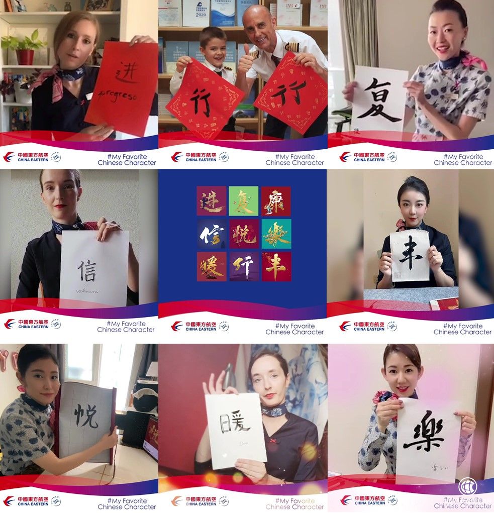 在短視頻全球熱潮中,東航全年在海外發(fā)布視頻100多部,總播放量突破5000萬。鼓勵各國員工跨文化合作,以“TA視角”為特色,創(chuàng)作了“夢想起航的地方”“東航全球開放日”“爸爸飛去哪兒”等溫情與流量兼具的爆款,其中“最美漢字·10國員工寫書法”系列視頻中,意義深遠和結構優(yōu)美的漢字書法吸引了572.2萬網(wǎng)友關注、觀看量突破123.7萬。