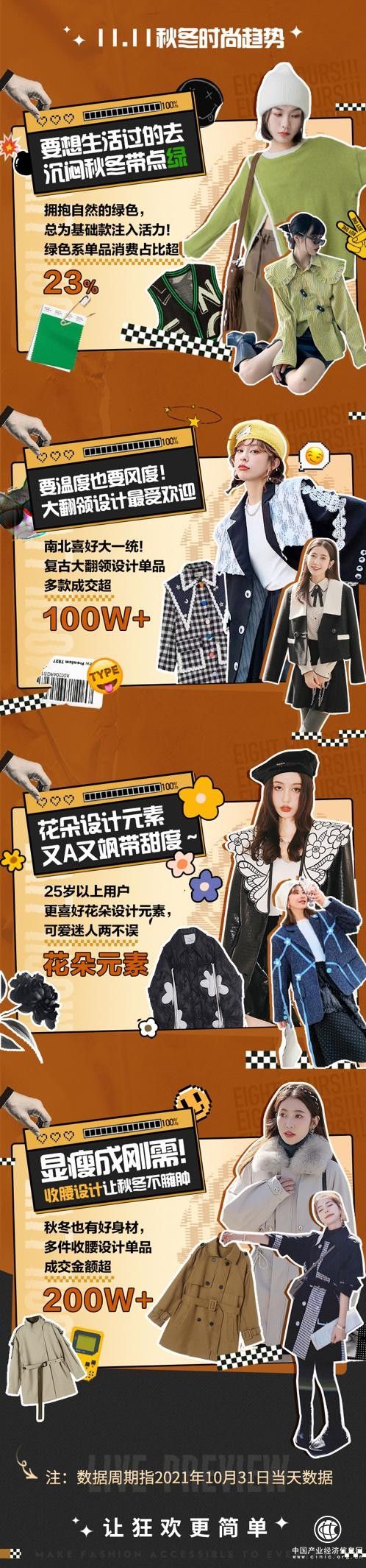 此外,蘑菇街在戰(zhàn)報(bào)中還一并發(fā)布了《雙十一秋冬時(shí)尚趨勢(shì)》,涵蓋2021秋冬流行色、2021秋冬最受歡迎女裝款式,2021流行設(shè)計(jì)元素等潮流趨勢(shì)內(nèi)容,為秋冬女裝消費(fèi)提供參考。