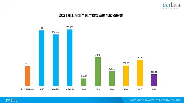 在國家推進(jìn)媒體融合發(fā)展意見的指引下,全國廣播通過打造智能平臺,自建客戶端,入駐商業(yè)平臺,搭載車聯(lián)網(wǎng)等舉措,進(jìn)行轉(zhuǎn)型升級。2021年上半年,全國主流廣播頻率EMC指數(shù)為547.9,融合傳播取得一定成效,線下與平臺的直播流節(jié)目仍然是核心支柱,指數(shù)達(dá)到1400-1500+,在社交與短視頻平臺影響力持續(xù)增強(qiáng),微博與抖音賬號粉絲數(shù)分別達(dá)到106萬與59萬,微信與快手指數(shù)表現(xiàn)突出,融合傳播增強(qiáng)了廣播媒體在移動(dòng)互聯(lián)網(wǎng)主陣地的影響力與傳播聲量。