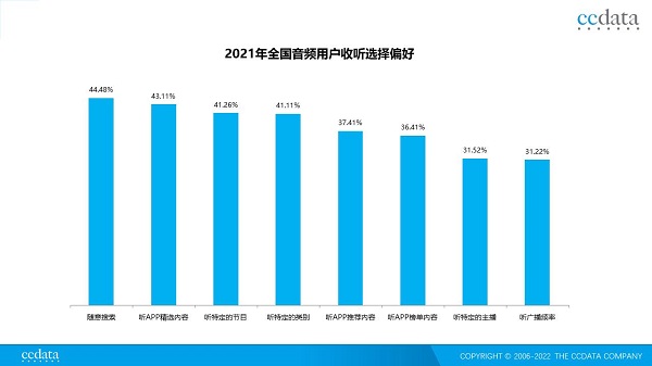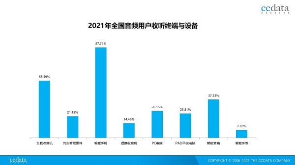 隨著移動(dòng)化與智能化的發(fā)展,智能終端與設(shè)備躋身音頻收聽的主流工具,智能手機(jī)、車載收音機(jī)與智能音箱位居前三名。