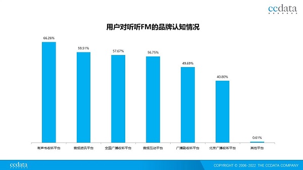 通過對直播流節(jié)目的內(nèi)容拆分與標(biāo)題改造,建立互動(dòng)聊天室,強(qiáng)化陪伴與互動(dòng)優(yōu)勢,制作精品音頻節(jié)目,深耕垂類領(lǐng)域與匯聚優(yōu)質(zhì)版權(quán)內(nèi)容等舉措,聽聽FM成功塑造了用戶對平臺的綜合性、多元化、立體化品牌認(rèn)知。在廣播收聽平臺外,用戶對聽聽FM還形成了有聲書平臺、音頻資訊平臺、音頻互動(dòng)平臺、廣播劇收聽平臺等多種類型的品牌認(rèn)知。