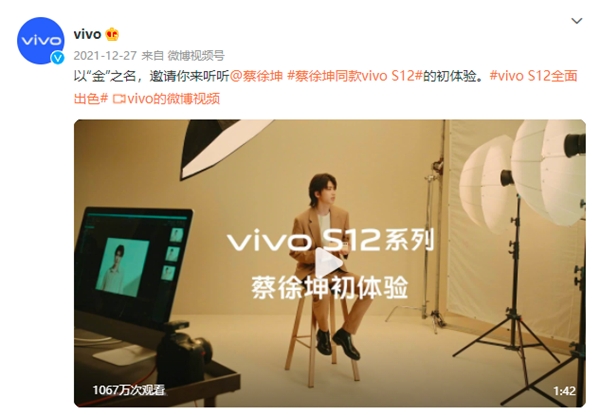 此前,vivo官方微博也分享了代言人蔡徐坤上手vivo S12系列的初體驗(yàn)。在視頻中,蔡徐坤分享了vivo S12系列在影像、性能兩大方面的體驗(yàn),并與粉絲交流了使用的心得和經(jīng)驗(yàn),表示“拍照功能更聚焦人物本身的質(zhì)感”,更選擇了“暖金”作為其最喜愛的配色。