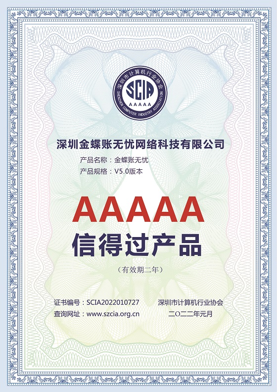 金蝶賬無(wú)憂“信得過(guò)產(chǎn)品5A評(píng)級(jí)“