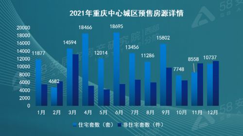 近日,58同城、安居客發(fā)布《2021重慶理想安居指數報告》,從土地市場、樓市供需、用戶畫像、區(qū)域熱度等層面呈現2021年重慶樓市整體發(fā)展動態(tài)。報告顯示,2021年重慶市場行情整體呈現先起后浮最終平穩(wěn)的態(tài)勢;土地進入調整期,中心城區(qū)土地成交137宗;發(fā)放522張預售許可證,產品類型以洋房為主力;商品住宅共成交約17萬套房源,市場表現為上半年“供不應求”,下半年“供大于求”;“二套房可公積金貸款”成找房熱門關鍵詞。