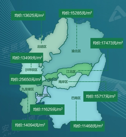 房價方面,重慶新房商品住宅成交均價約15382元/平方米,巴南區(qū)整體房價處于最低位,其次為大渡口區(qū)。渝中區(qū)作為老牌核心區(qū),多年無土地出讓,稀缺的土地資源決定其產品的高端定位,加上解放碑、大坪等新老商圈輻射,新房房價穩(wěn)居高位;三北區(qū)域房價穩(wěn)定,在一路向北的帶領下,北區(qū)仍然是2021年的置業(yè)熱土,兩江國際商務中心的開業(yè),昭示著以中央公園為代表的等北區(qū)熱點板塊配套逐漸成熟;西區(qū)作為發(fā)展橋頭堡位置,2021年成渝雙城經濟圈及科學城規(guī)劃落地,大學城、西永等板塊炙手可熱,成交房價僅次于渝中區(qū)、北區(qū)。