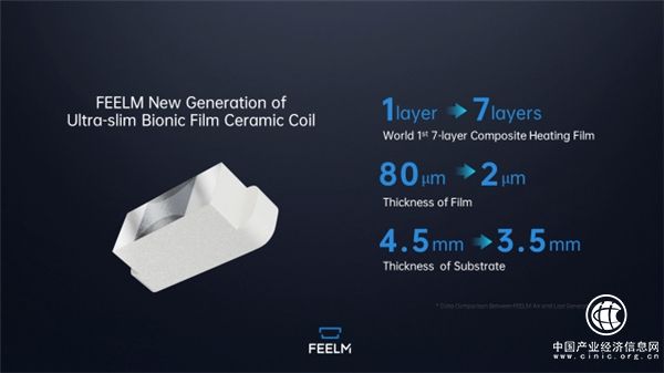 FEELMAir采用新一代仿生薄膜陶瓷芯,搭載行業(yè)首款七層復(fù)合加熱膜,膜的厚度實(shí)現(xiàn)從80μm到最薄2μm的飛躍,薄了近40倍;整體陶瓷基體厚度僅3.5mm,比上一代減薄22%。極致輕薄的新一代仿生薄膜陶瓷芯實(shí)現(xiàn)三大技術(shù)創(chuàng)新;同時(shí),從“芯”升級的FEELMAir整體解決方案,也帶來了七大革命性體驗(yàn)突破。