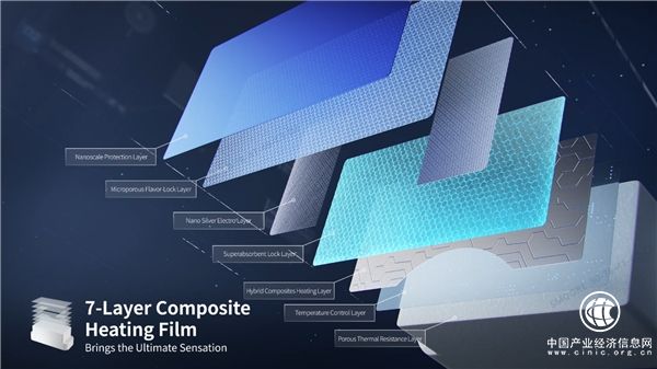 首先是材料創(chuàng)新,它采用行業(yè)首款七層復(fù)合加熱膜,取代上一代的單層金屬厚膜。七層膜各有乾坤,包括提升抗腐蝕性的寶石防護(hù)層,提升口感還原度的細(xì)胞鎖鮮層,提升能效的納米銀電極層,擁有高表面張力多孔仿生結(jié)構(gòu)的超吸鎖液層,能夠快速升溫的精密合金加熱層,可以輔助形成梯級溫場的控溫層,借鑒航天隔熱瓦結(jié)構(gòu)減少熱量散失的多孔阻熱層。七層復(fù)合加熱膜帶來了陶瓷芯性能的全面提升,也帶來更好的減害與更高的能效。