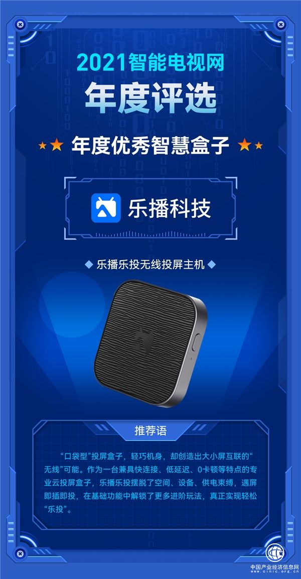 2021年,樂播樂投-無線投屏主機參與了ZNDS智能電視網(wǎng)舉辦的第六屆年度評選活動,最近獲獎名單正式公布,樂播樂投成功榮獲“年度優(yōu)秀智慧盒子”的獎項。 此次智能電視網(wǎng)年度評選活動專業(yè)性強,共吸引了百余家品牌產(chǎn)品參與評選,受到行業(yè)好評。