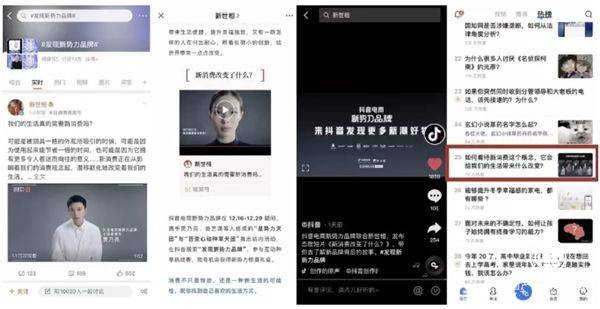 在品牌軟性建設(shè)中,以內(nèi)容傳播建立認(rèn)知陣地和流量陣地尤其重要,態(tài)度短片既集中展示了新消費(fèi)品牌的正面形象,也為12月新勢(shì)力品牌活動(dòng)奠定了整體傳播動(dòng)作的規(guī)模和調(diào)性。抖音電商為活動(dòng)品牌提供了跨平臺(tái)的宣發(fā)資源,幫助新品牌迅速提升知名度、美譽(yù)度,加速其破圈進(jìn)程。新世相作為年輕人心目中優(yōu)質(zhì)內(nèi)容的代名詞,也幫助新品牌增加認(rèn)知透?jìng)髁Χ?、贏得用戶好感。