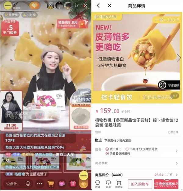 植物教授的14袋輕食餃產(chǎn)品是這次GMV爆發(fā)的主力,其能夠成為爆款,得益于周邊內(nèi)容投放以及短視頻預(yù)熱。植物教授以輕食控卡賣點(diǎn)對(duì)應(yīng)冬季養(yǎng)膘痛點(diǎn),將囤貨心智進(jìn)行差異化透?jìng)鳌T诙兑綦娚唐脚_(tái)新勢(shì)力品牌活動(dòng)加持下,植物教授不僅達(dá)到了銷量突破,其輕食控卡的健康飲食心智也同樣深入人心。