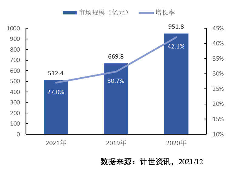 受益于私有云行業(yè)相關(guān)利好政策的推動(dòng),中國私有云行業(yè)發(fā)展勢頭良好。根據(jù)《報(bào)告》統(tǒng)計(jì),2020年,中國私有云市場規(guī)模達(dá)到951.8億元,同比增長42.1%。