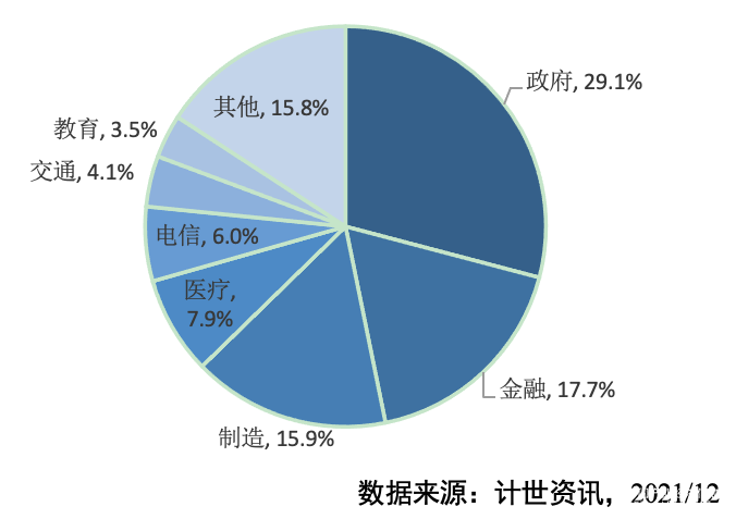 從行業(yè)結(jié)構(gòu)看,2020年政府依然是私有云最大的應(yīng)用領(lǐng)域,占比29.1%,其次是金融、制造,分別占比17.7%、15.9%。