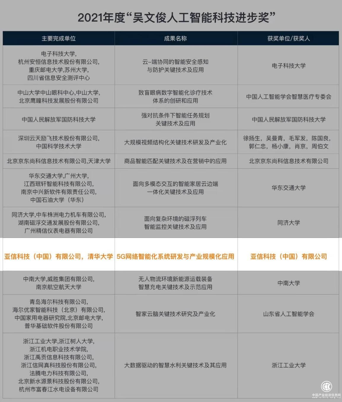 1月27日,我國人工智能領域最高獎——“2021年度吳文俊人工智能科學技術獎”名單正式公布,亞信科技與清華大學智能產業(yè)研究院(AIR)聯(lián)合完成的 “5G網絡智能化系統(tǒng)研發(fā)與產業(yè)規(guī)?;瘧谩睒s獲“吳文俊人工智能科技進步獎”。亞信科技成為通信行業(yè)唯一獲獎單位。