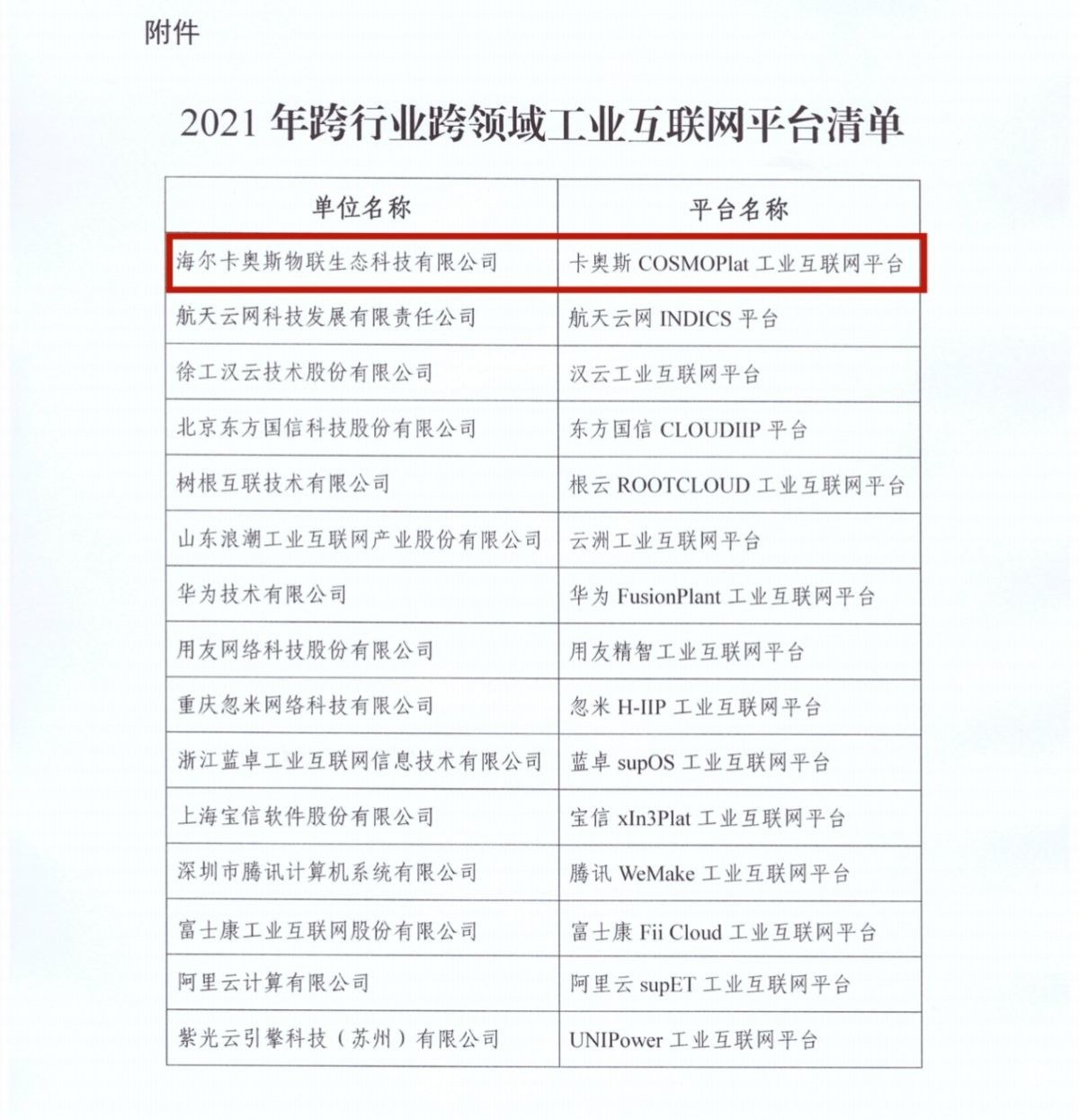 近日,工信部公布了2021年跨行業(yè)跨領(lǐng)域工業(yè)互聯(lián)網(wǎng)平臺清單,卡奧斯COSMOPlat工業(yè)互聯(lián)網(wǎng)平臺、航天云網(wǎng)INDICS平臺、漢云工業(yè)互聯(lián)網(wǎng)平臺等15家平臺入選,其中,卡奧斯COSMOPlat位居首位。
