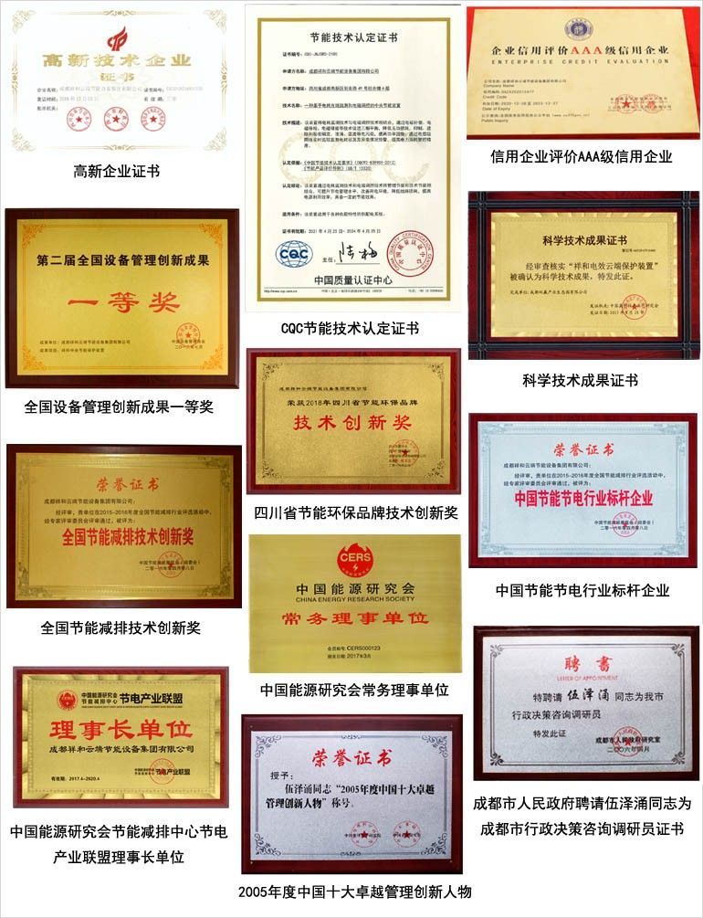 祥和節(jié)能集團由1992年6月創(chuàng)立的祥和磷化公司發(fā)展而來,至今已經(jīng)有30年歷史了。30年來,祥和集團未忘初心,不斷加大科研投入,推動科技創(chuàng)新,致力于解決節(jié)能減碳行業(yè)長期存在的難點、痛點。祥和節(jié)能集團受到了社會各界的肯定和支持,獲得了各類榮譽和頭銜,并擁有中央節(jié)能保護裝置專利技術和CQC節(jié)能技術認定證書等,踏上了更加廣闊的征程。