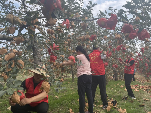 城區(qū)局“絲路愛(ài)心社”志愿服務(wù)隊(duì)幫助零售戶(hù)進(jìn)行蘋(píng)果摘袋